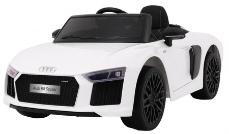 Audi R8 Spyder na akumulator biały + Pilot + EVA + Wolny Start + Radio MP3 + LED