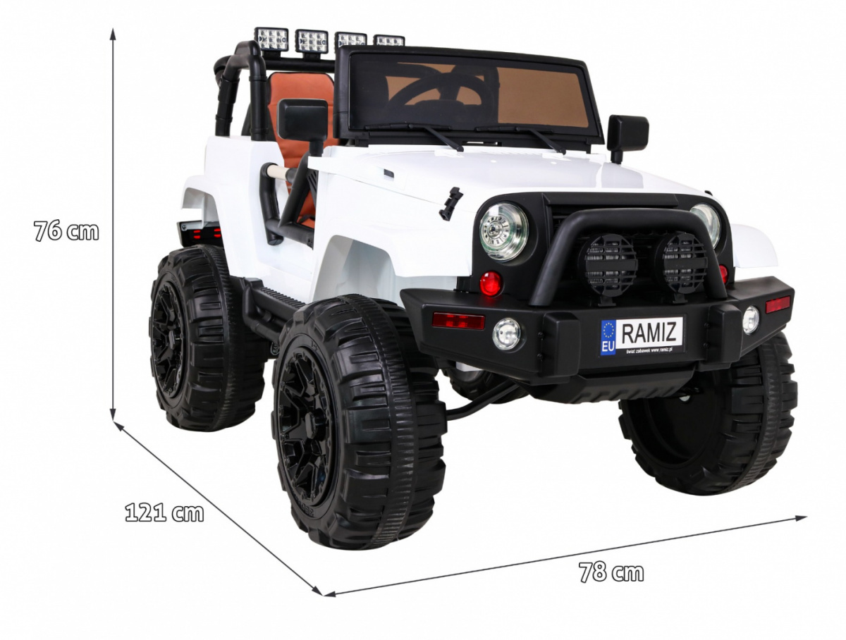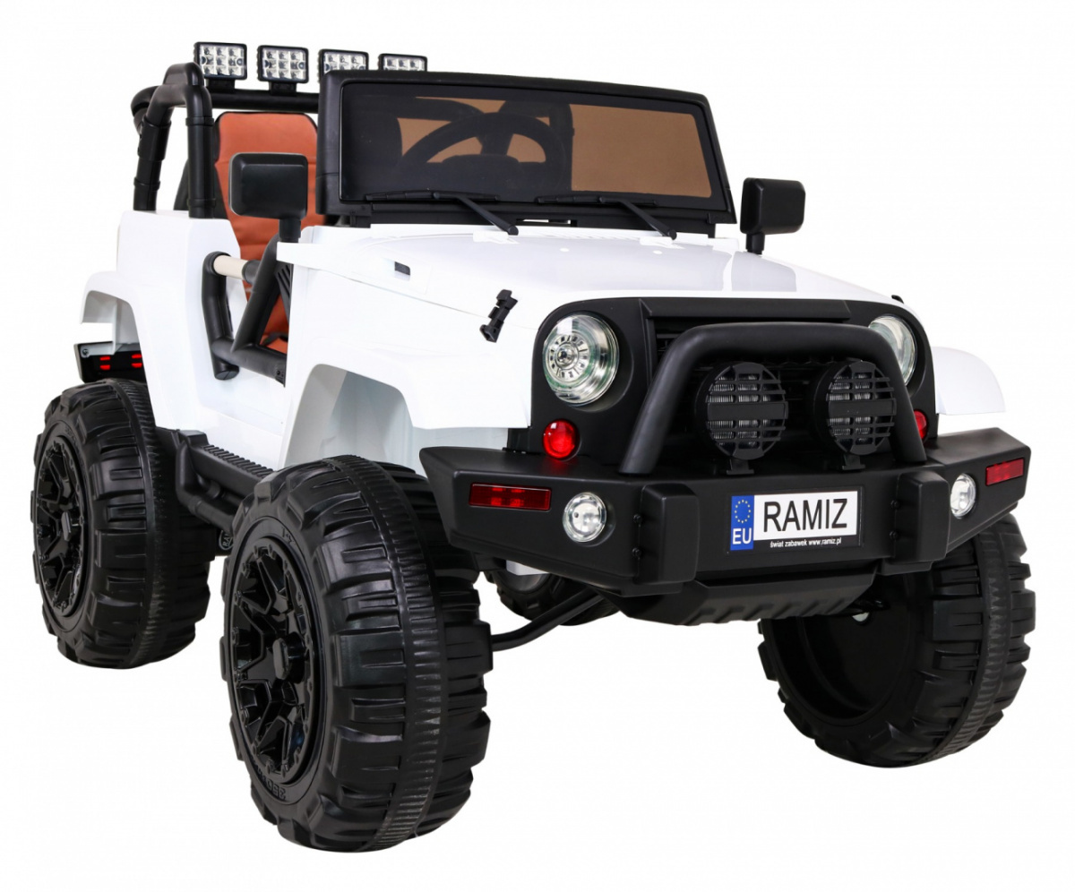 Auto na akumulator All Terrain dla dzieci Biały Terenówka typu jeep + Pilot + Światła Dźwięki