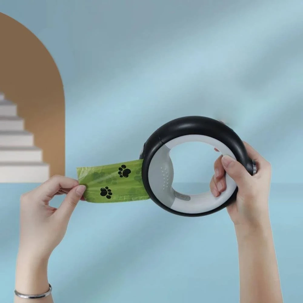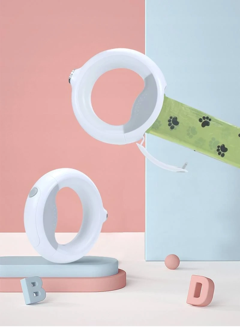 • Uchwyt ma również użyteczny dyspenser ekologicznych torebek sanitarnych w rolce pozwalających na higieniczne usunięcie „pamiątek” ze spaceru.