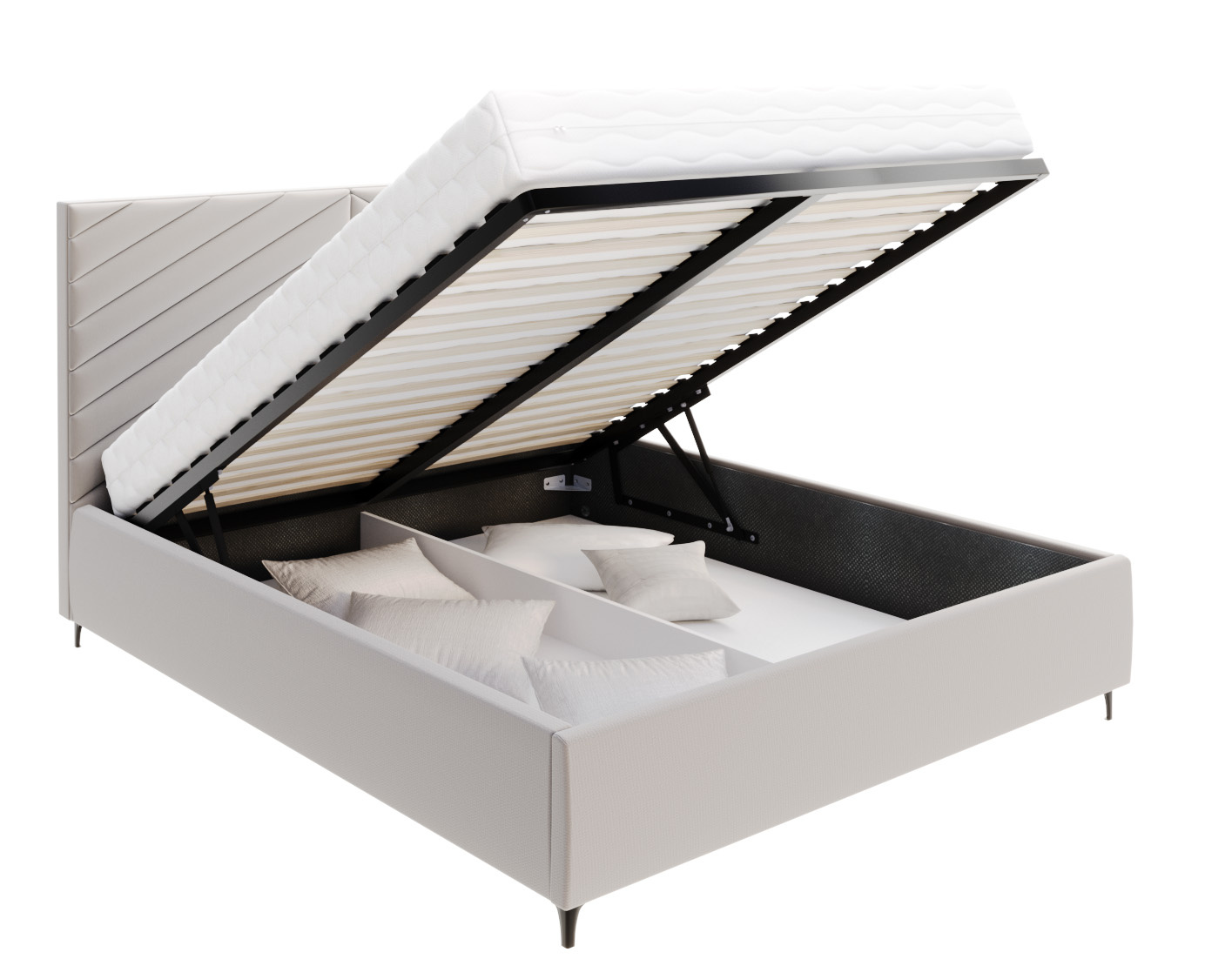 ✅Wyposażone jest w pojemnik na pościel oraz mechanizm podnoszący stelaż, co podnosi jego funkcjonalność i ułatwia przechowywanie pościeli czy innych przedmiotów.