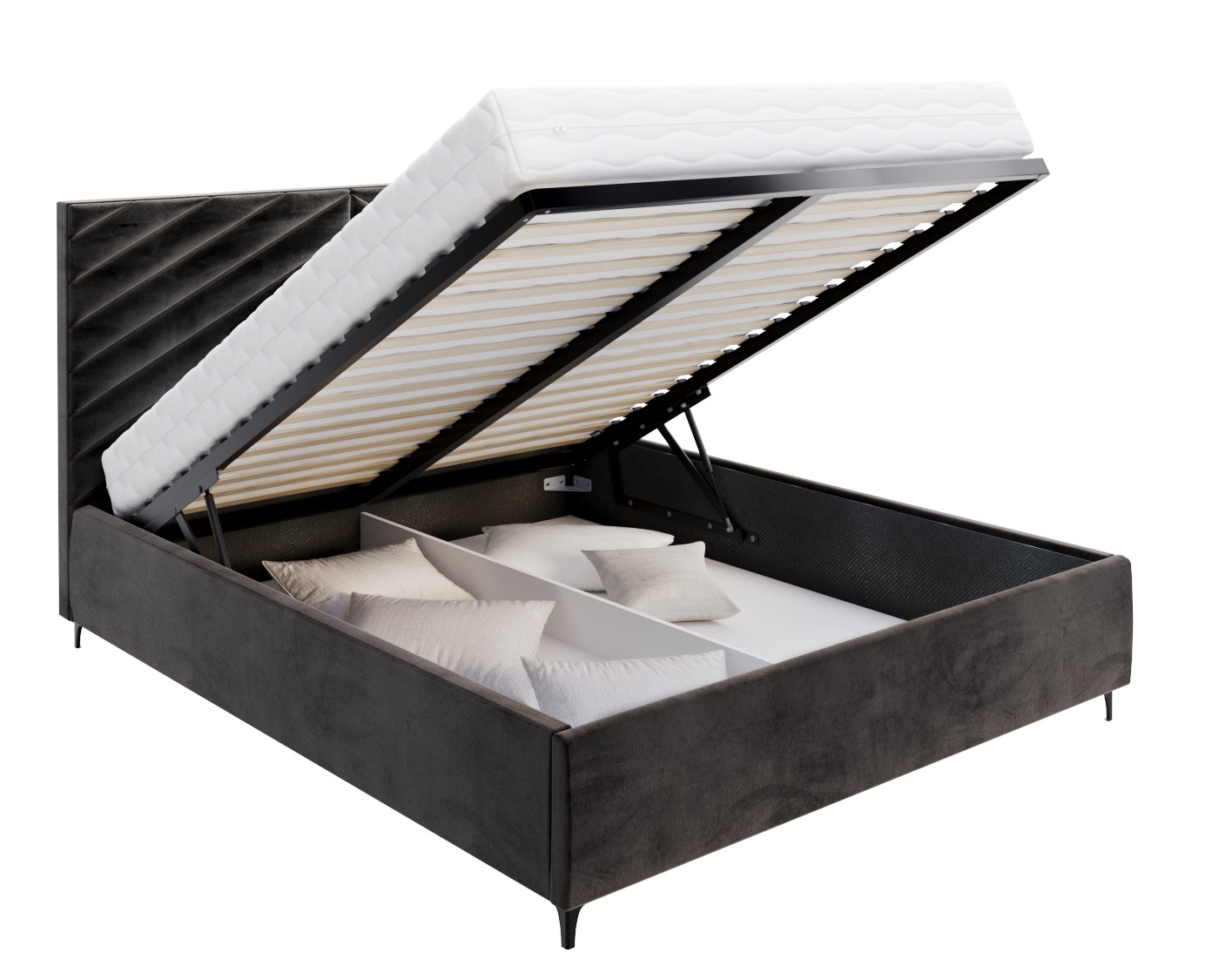 ✅Wyposażone jest w pojemnik na pościel oraz mechanizm podnoszący stelaż, co podnosi jego funkcjonalność i ułatwia przechowywanie pościeli czy innych przedmiotów.