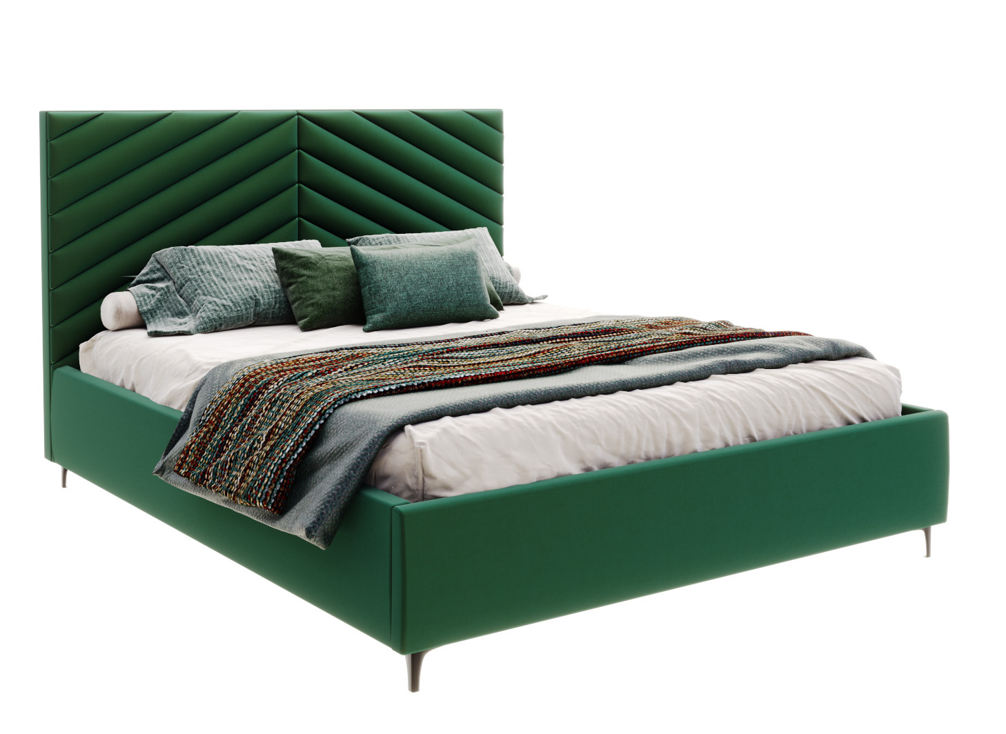 FDM Łóżko tapicerowane ELEGANTE 180x200 cm z pojemnikiem i stelażem podnoszonym - TRINITY butelkowa zieleń