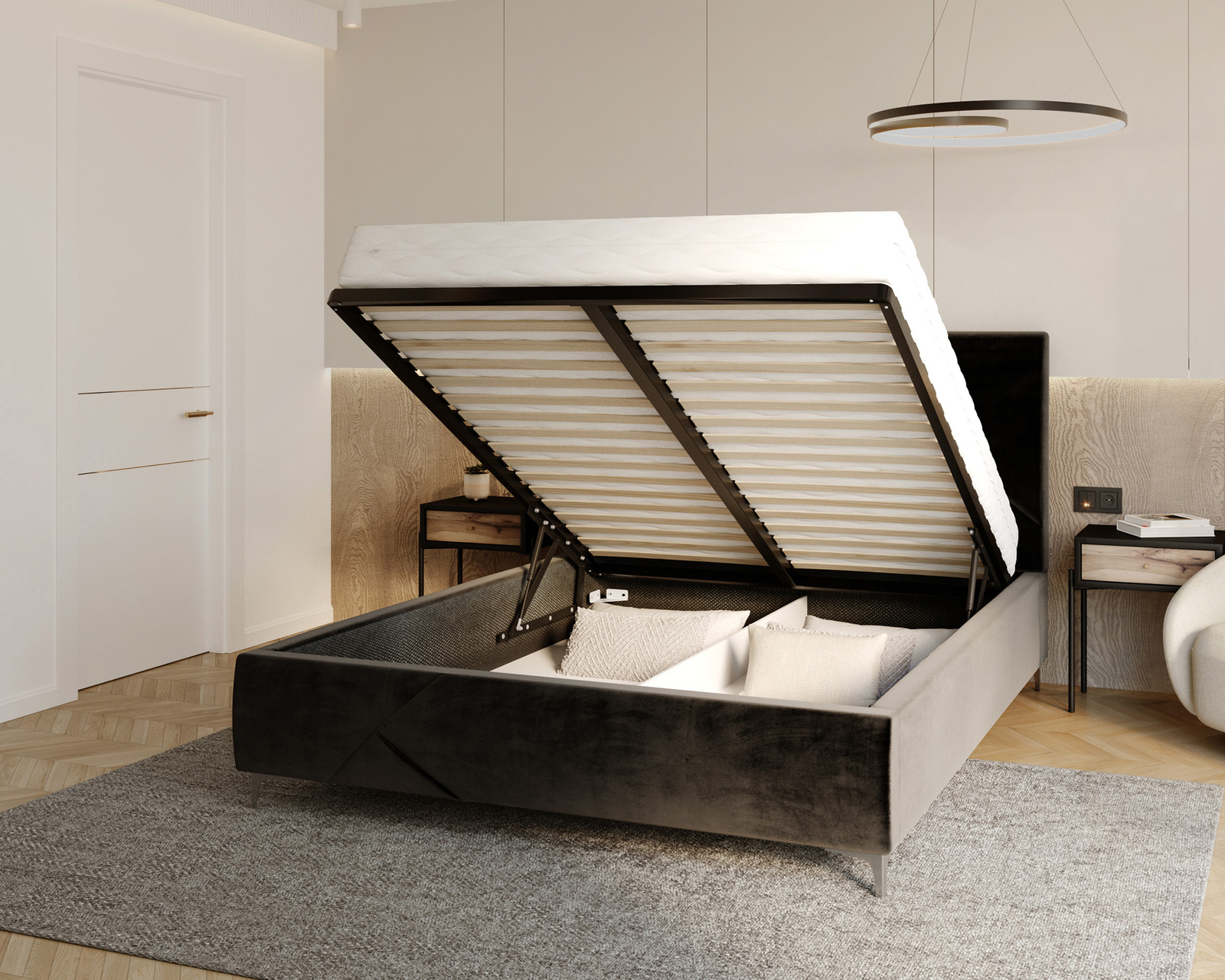 ✅Wyposażone w pojemnik na pościel, NAVARO oferuje dodatkową przestrzeń do przechowywania, co jest niezastąpionym atutem w organizowaniu przestrzeni w sypialni.