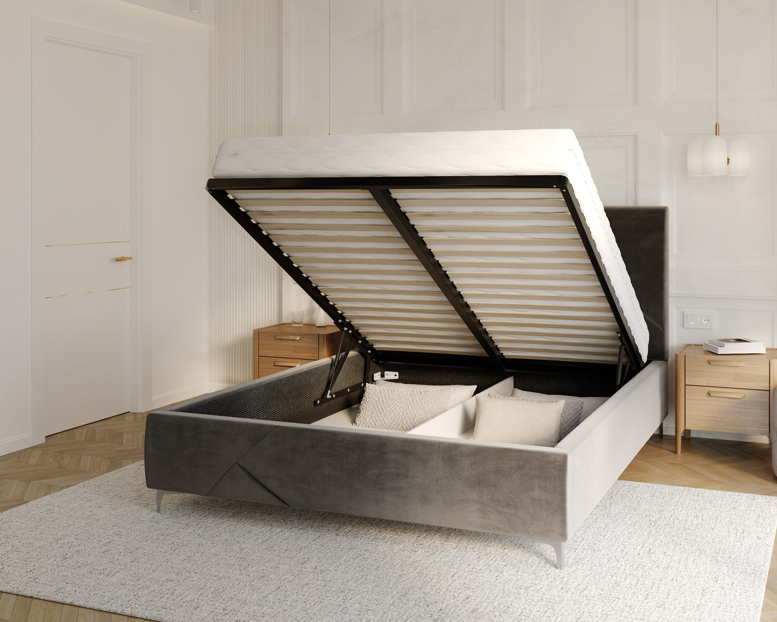 ✅Wyposażone w pojemnik na pościel, NAVARO oferuje dodatkową przestrzeń do przechowywania, co jest niezastąpionym atutem w organizowaniu przestrzeni w sypialni.