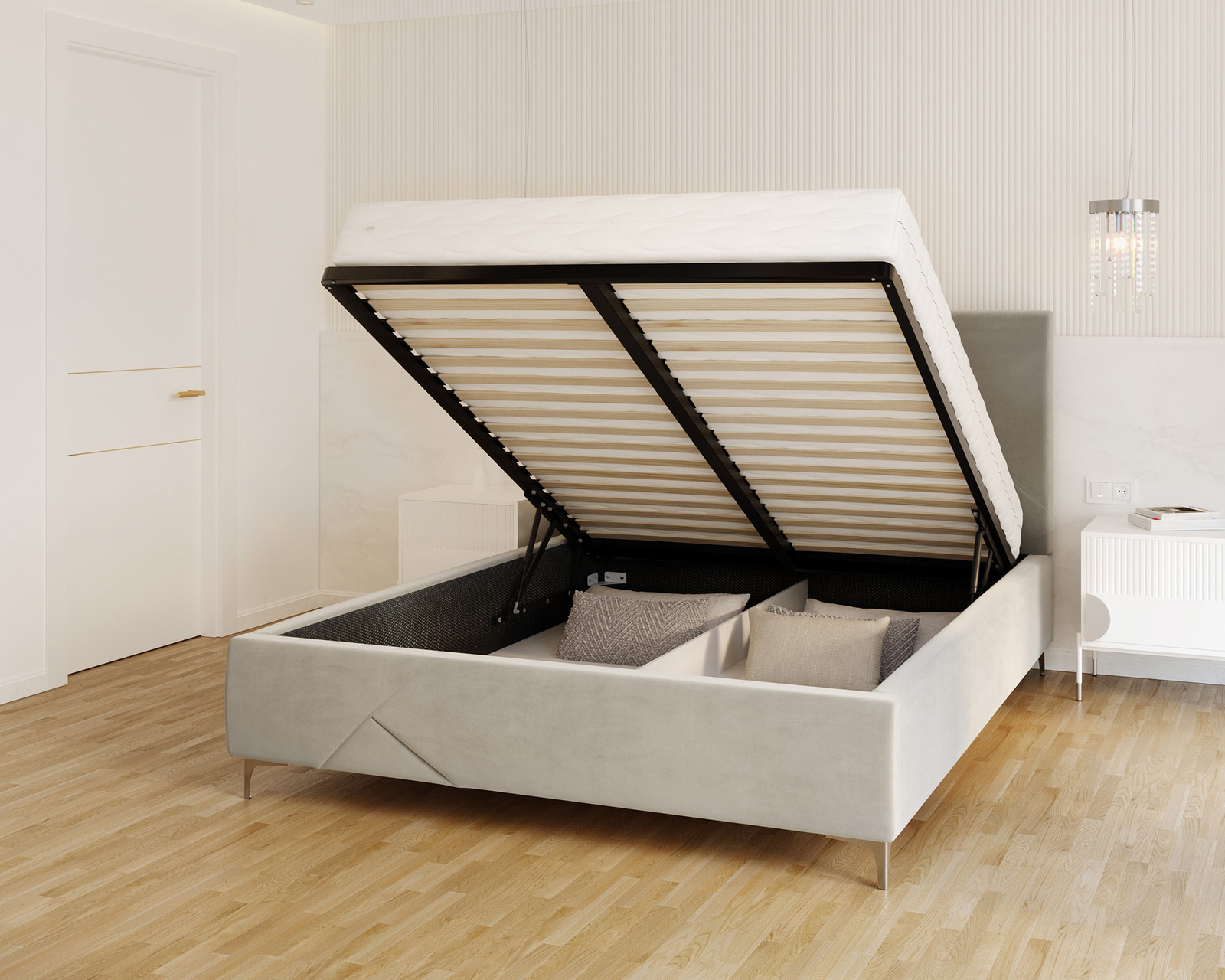 ✅Wyposażone w pojemnik na pościel, NAVARO oferuje dodatkową przestrzeń do przechowywania, co jest niezastąpionym atutem w organizowaniu przestrzeni w sypialni.