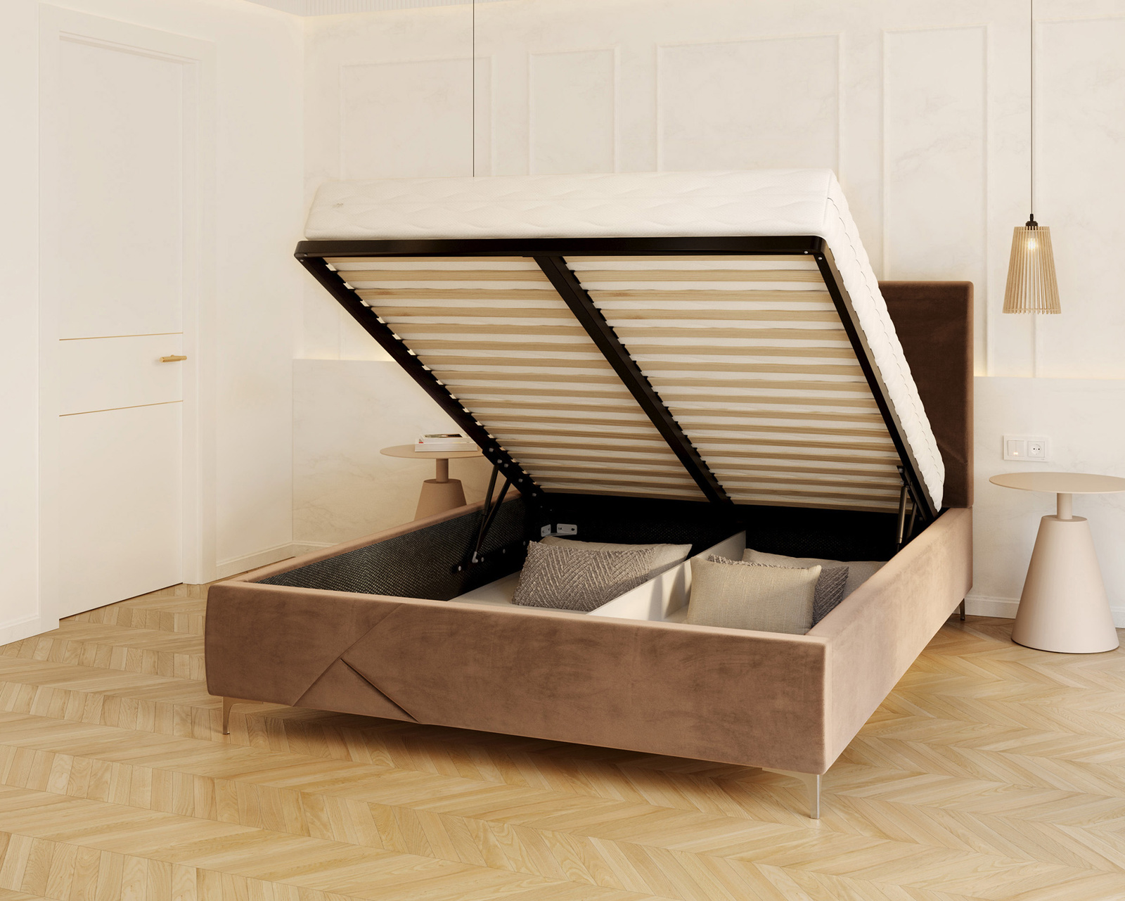 ✅Wyposażone w pojemnik na pościel, NAVARO oferuje dodatkową przestrzeń do przechowywania, co jest niezastąpionym atutem w organizowaniu przestrzeni w sypialni.
