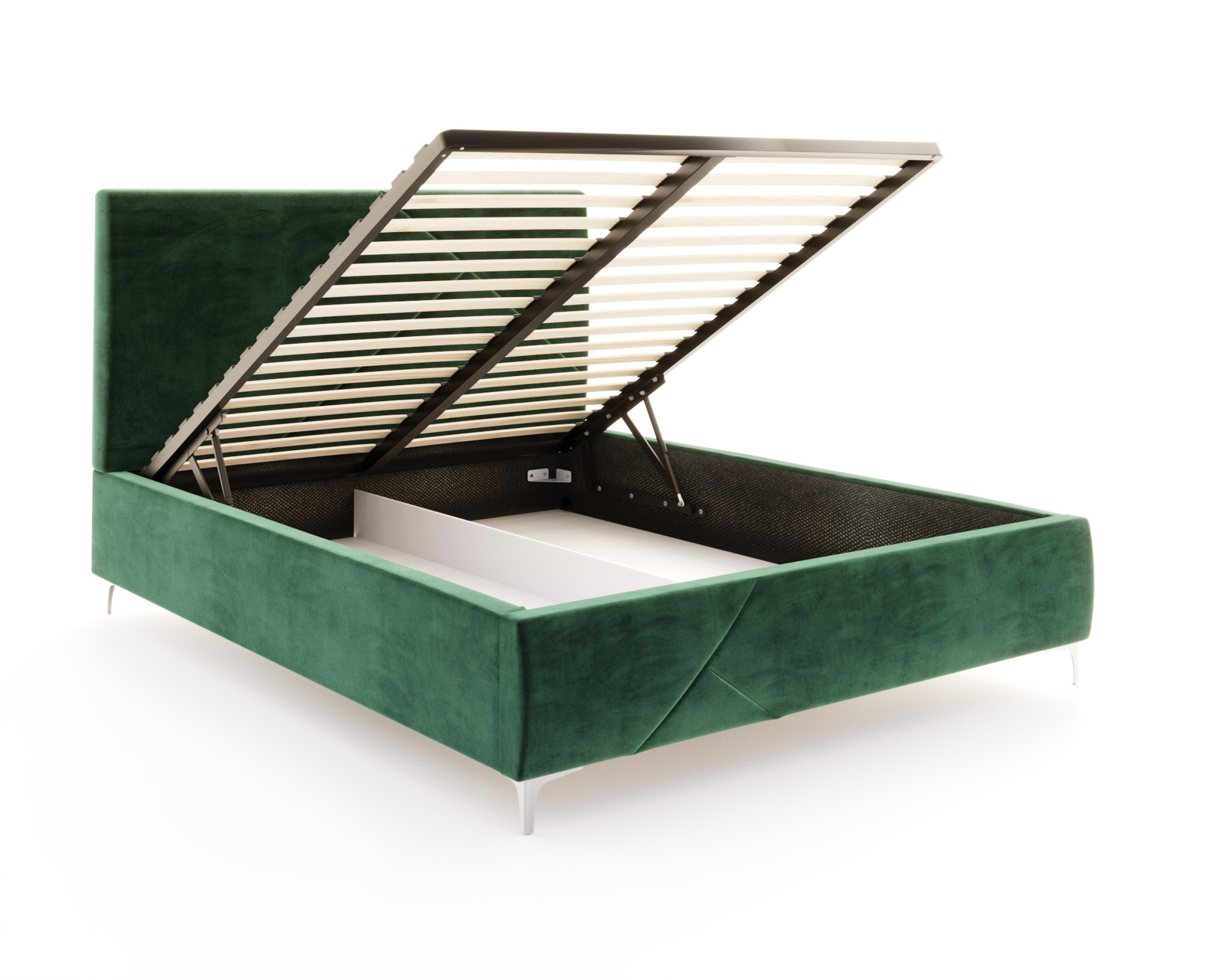 FDM Łóżko tapicerowane NAVARO 90x200 cm z pojemnikiem i stelażem podnoszonym - TRINITY butelkowa zieleń