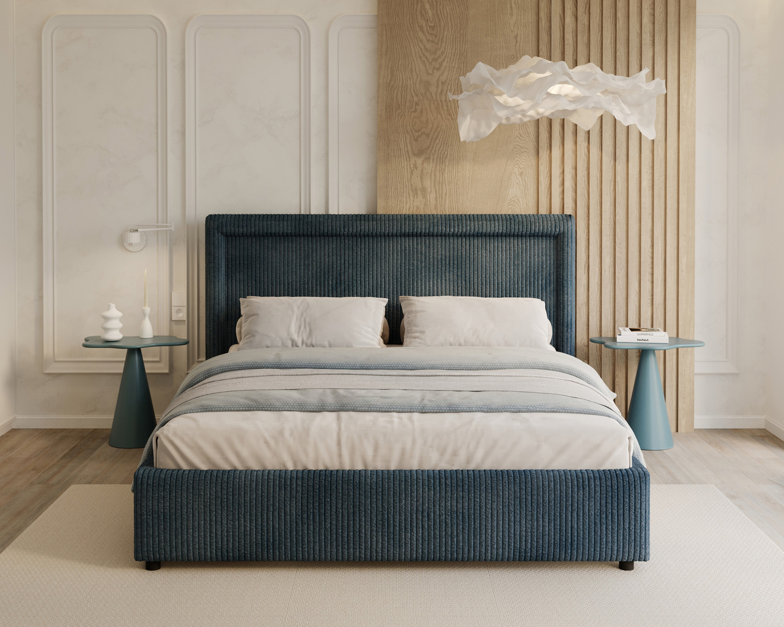 FDM Łóżko tapicerowane NOBILE 140x200 cm z pojemnikiem i metalowym stelażem podnoszonym - sztruks granat