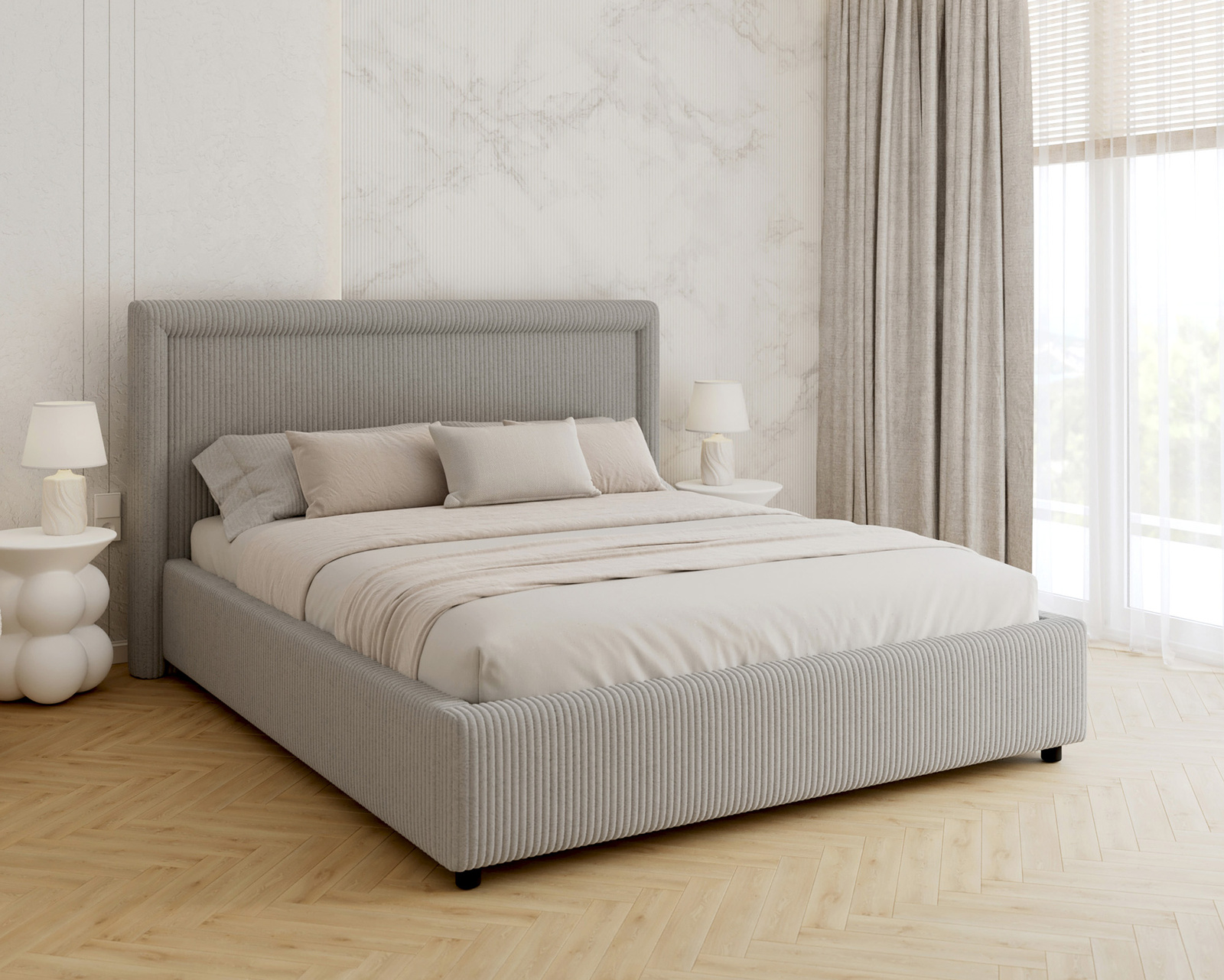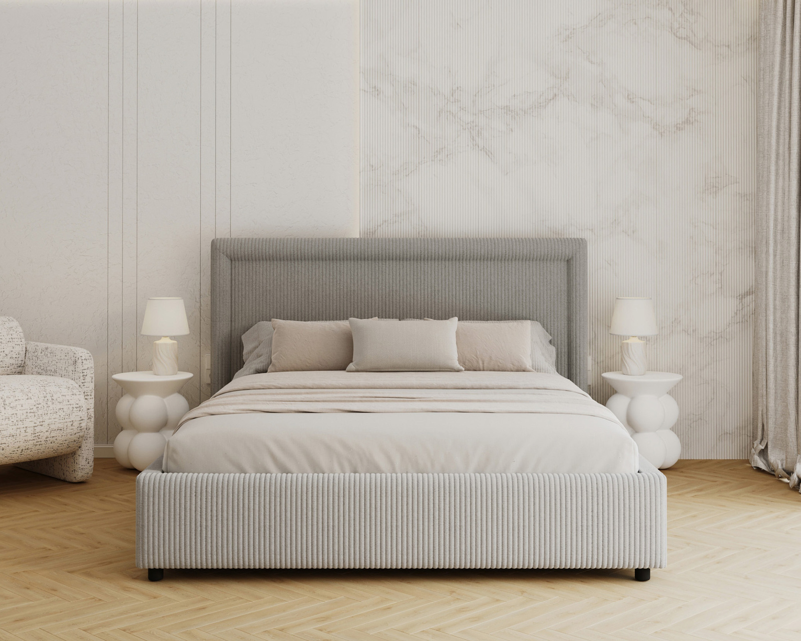 FDM Łóżko tapicerowane NOBILE 140x200 cm z pojemnikiem i metalowym stelażem podnoszonym - sztruks szary