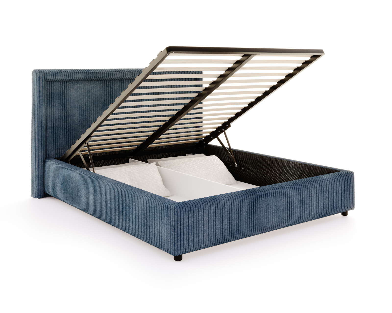 FDM Łóżko tapicerowane NOBILE 160x200 cm z pojemnikiem i metalowym stelażem podnoszonym - sztruks granat