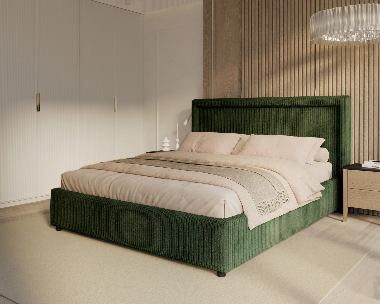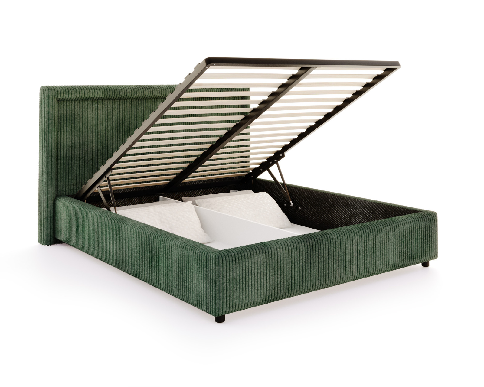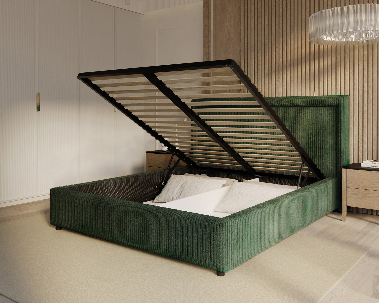FDM Łóżko tapicerowane NOBILE 180x200 cm z pojemnikiem i metalowym stelażem podnoszonym - sztruks butelkowa zieleń