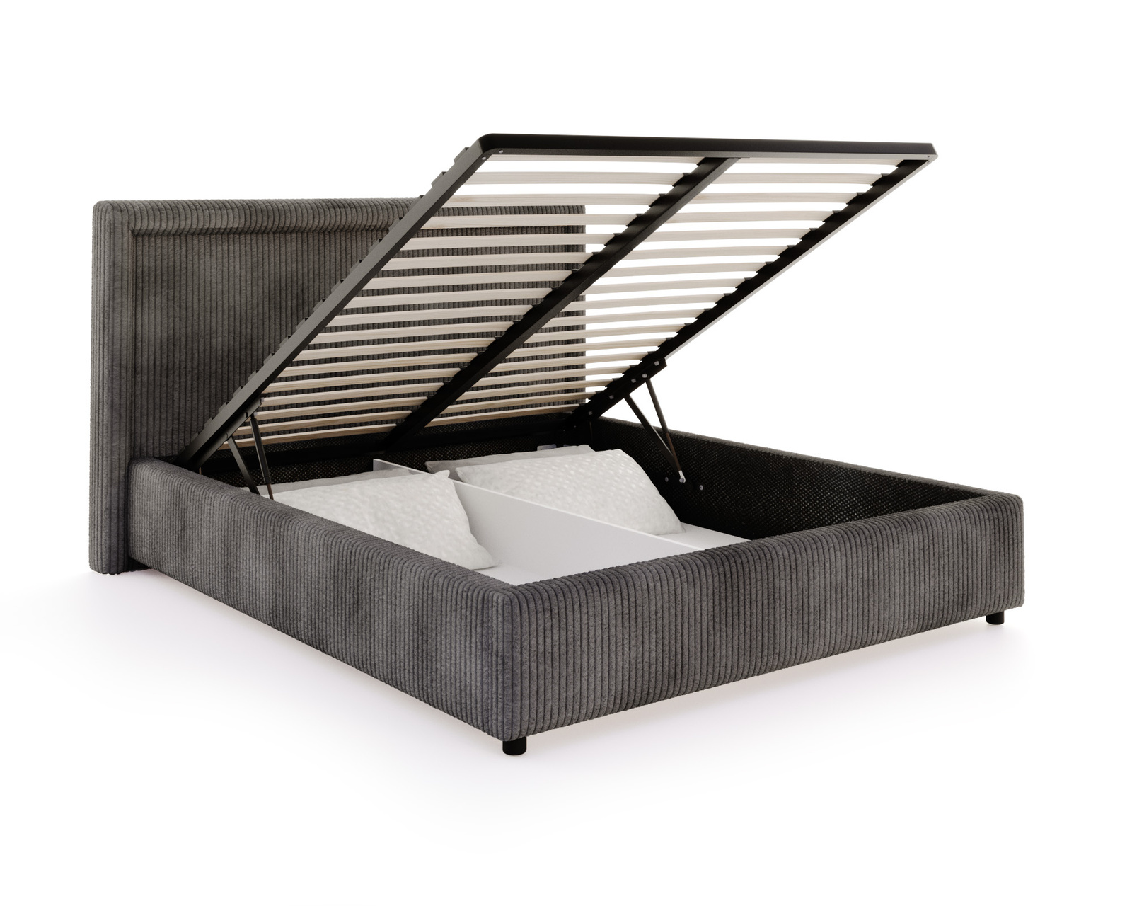FDM Łóżko tapicerowane NOBILE 180x200 cm z pojemnikiem i metalowym stelażem podnoszonym - sztruks grafit
